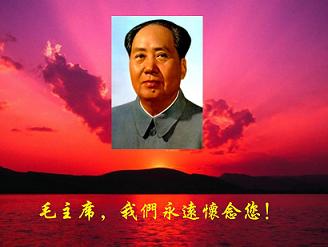 二00七年九月九日,伟大的中国共产党和中国人民解放军、伟大的中华人民共和国的缔造者---毛泽东主席逝世三十一周年的纪念日。 毛主席是我们中国人永远的自豪,他将永远活在我们的心中!今天是令亿万中国人一个伤心的日子,1976年9月9日0时10分他离我们而去,全世界都在他悲哀,因为他的思想,品德和他的丰功伟绩感染了全世界人民.三十一年后今天我们还是怀念他,是因为他是一面旗帜,他是无私的楷模,他是真正的人民公仆,他是真正的共产党员,他是值得我们中国人世世代代骄傲和纪念的人!