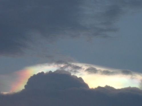 7月17日下午19时许 ,云南石屏西南方向惊现五彩云,极其艳丽,请高人辨识是否是大地震前的地震云。